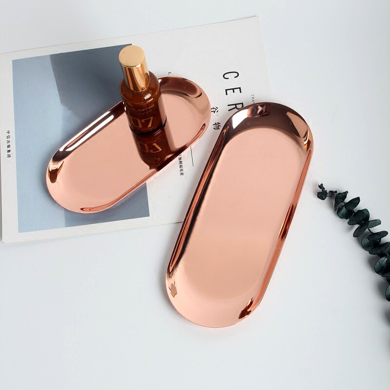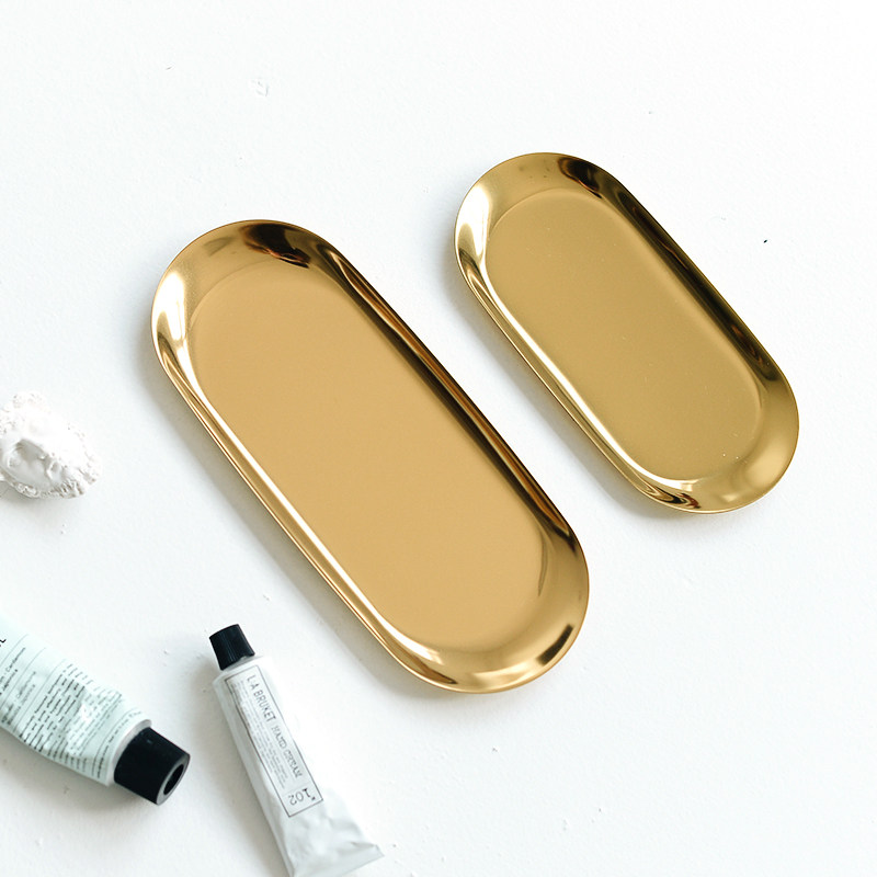 Cozyhome Yihe Nordic simple stainless steel oval jewelry stationery storage tray storage tray decoration tray