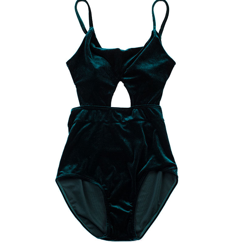 cicory net red velvet green ins Europe and the United States retro belly hot spring high waist conservative one-piece swimsuit women