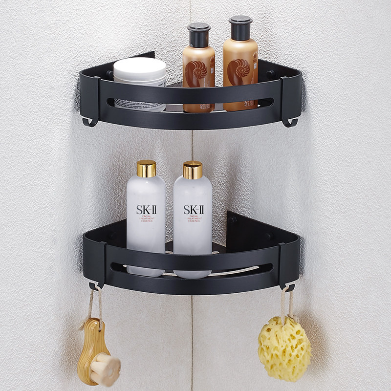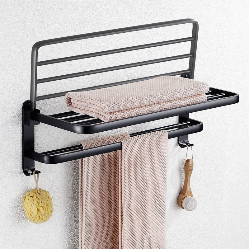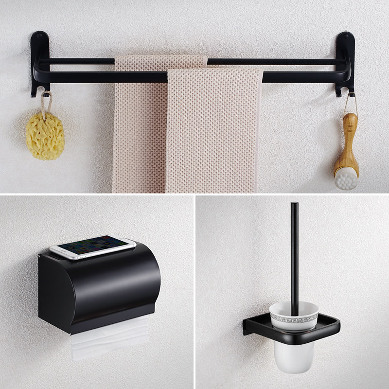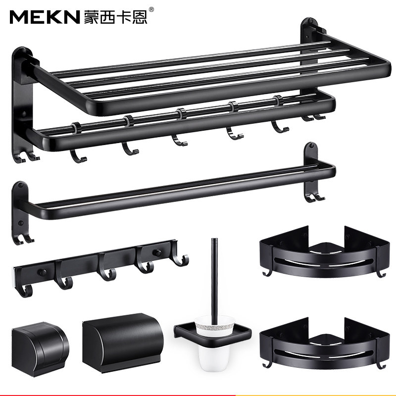 Nordic Style Black Towel Rack Free Punch Makeup Room Shelf Wall-mounted Bathroom Bath Towel Rack Pendant Suit Combination