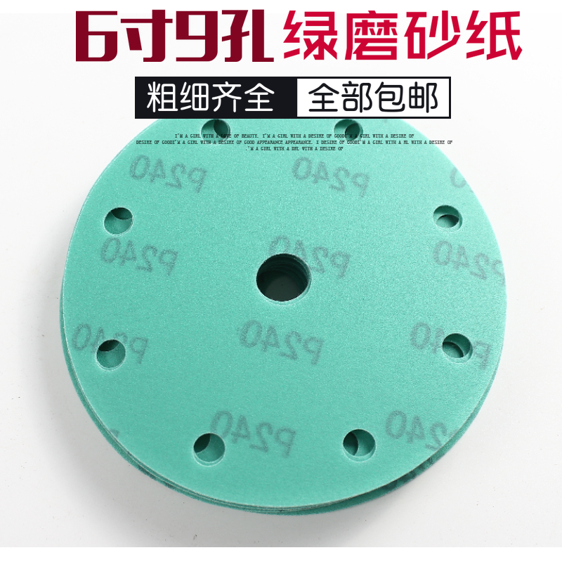 6-inch 17 holes flocking round green dry and wet double-use Ferce grinding card You are resistant to 3M Menser-PPG grinding machine