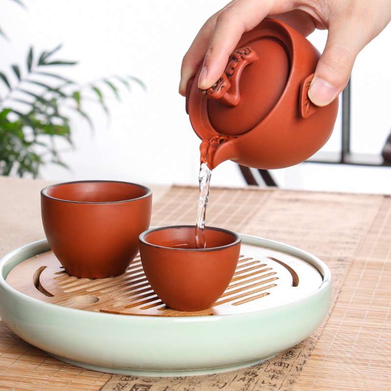 Ruyi Quick Guest Cup Purple Sand Tea Set With Two Cups Simple Little Kung Fu Ceramic Tea Set Single Teapot Tea Cup Sleeve