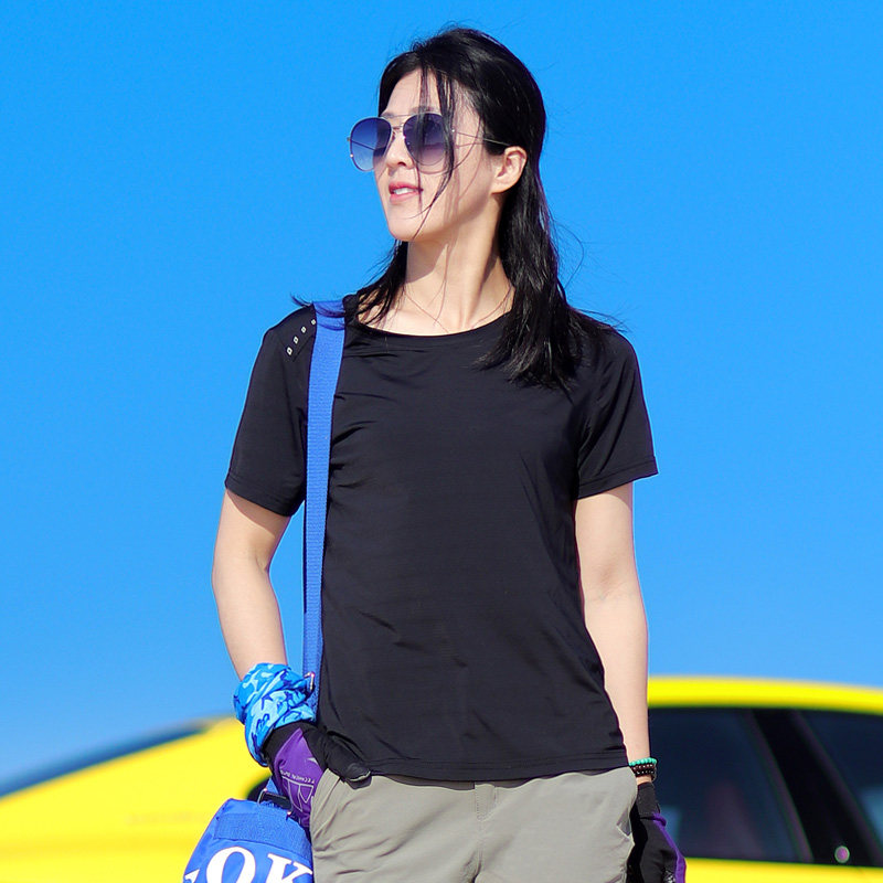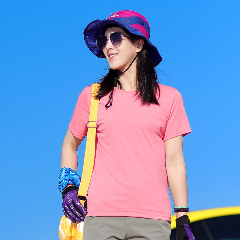 Outdoor sports T-shirt quick-drying short-sleeved women's round neck elastic mountaineering running sweat-absorbing breathable reflective quick-drying summer clothes