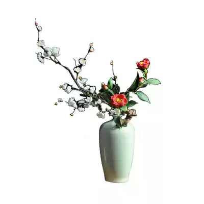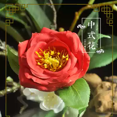 Red camellia Chinese floral simulation flower set model room display flower dried flower decoration fake flower pot landscape silk flower