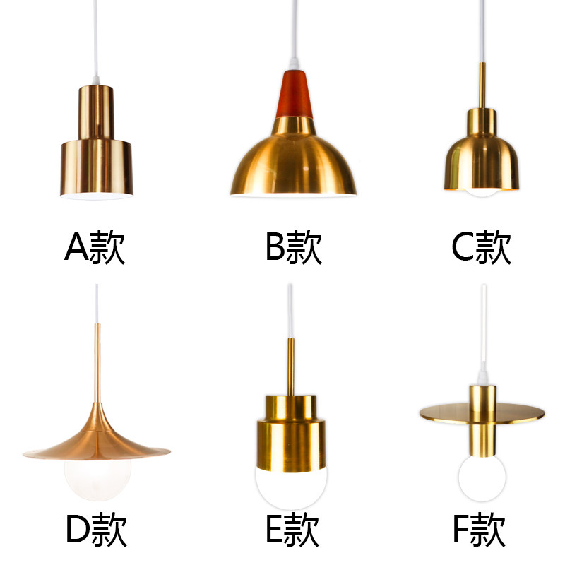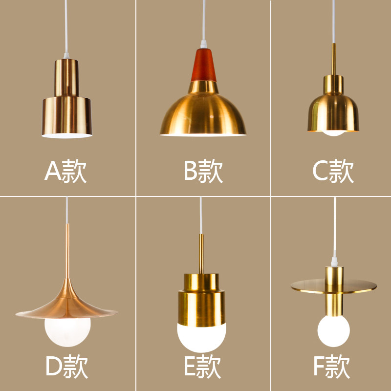 Nordic Minimal Creative Metal Copper Lampshade Chandelier Bedroom Bedside Lamp American Dining Room Bar Single Head Chandelier