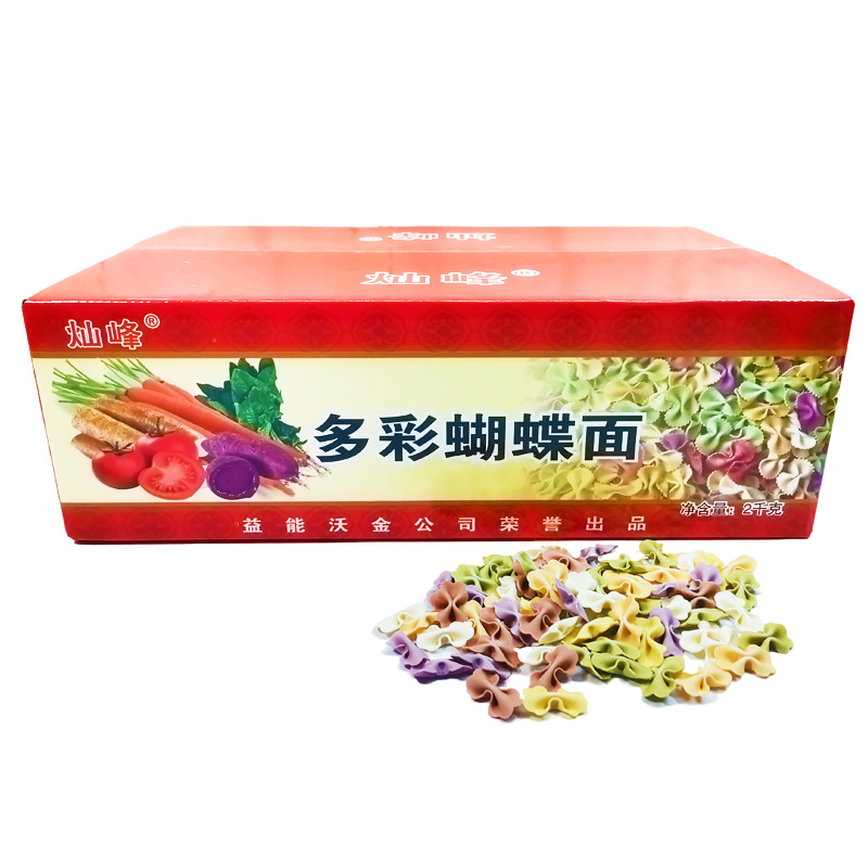 Small colorful fruit and vegetable butterfly noodles box 4kg small colorful fruit and vegetable butterfly noodles 500g x2 bags large colorful fruit and vegetable butterfly noodles 300g x4 bags