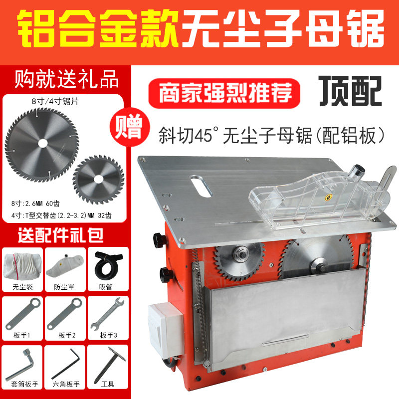 Full set of stainless steel face cart dust-free saws (aluminum plates) complete electric wood plate trolley dust-free saw (aluminum plate) single-cut 45-degree dust-free saw (aluminum plate) saw blade single base (without machine