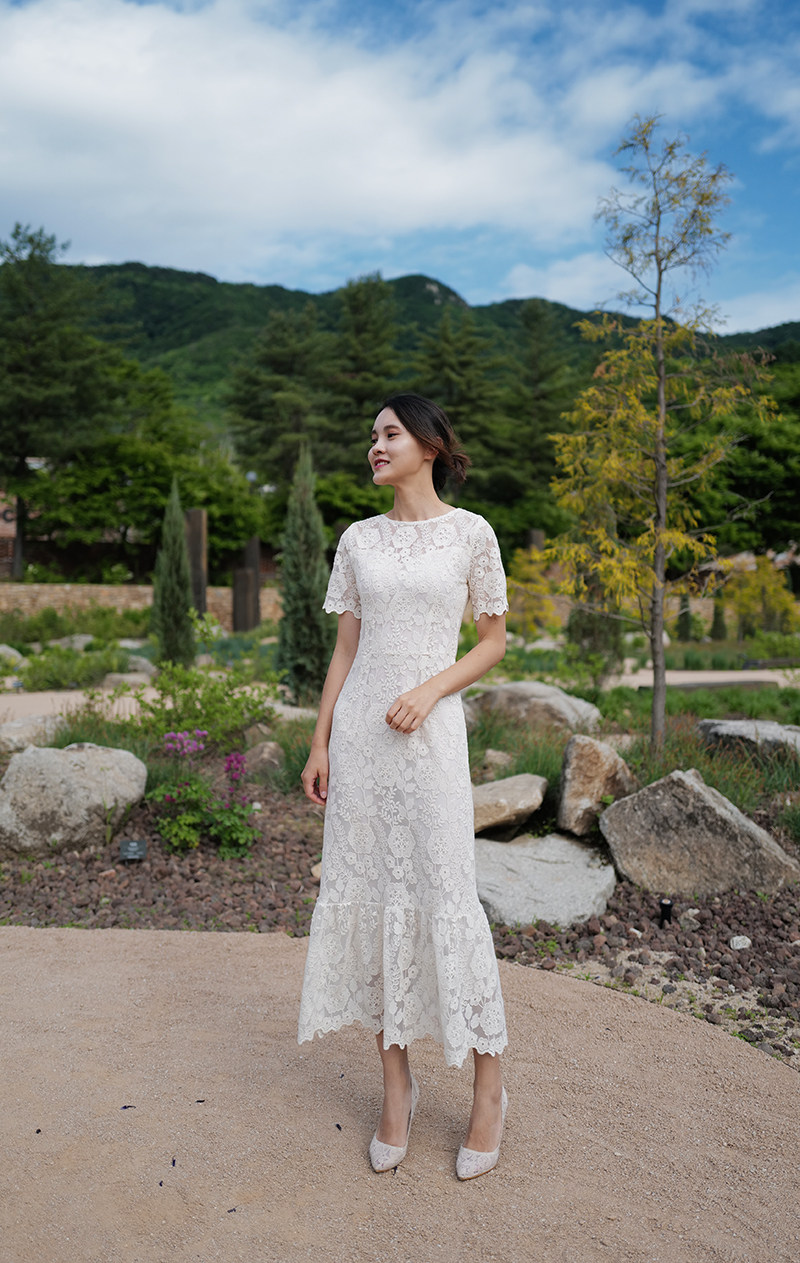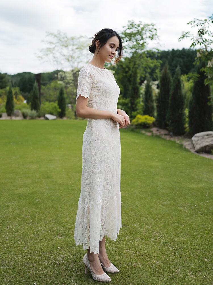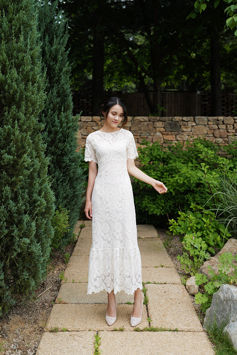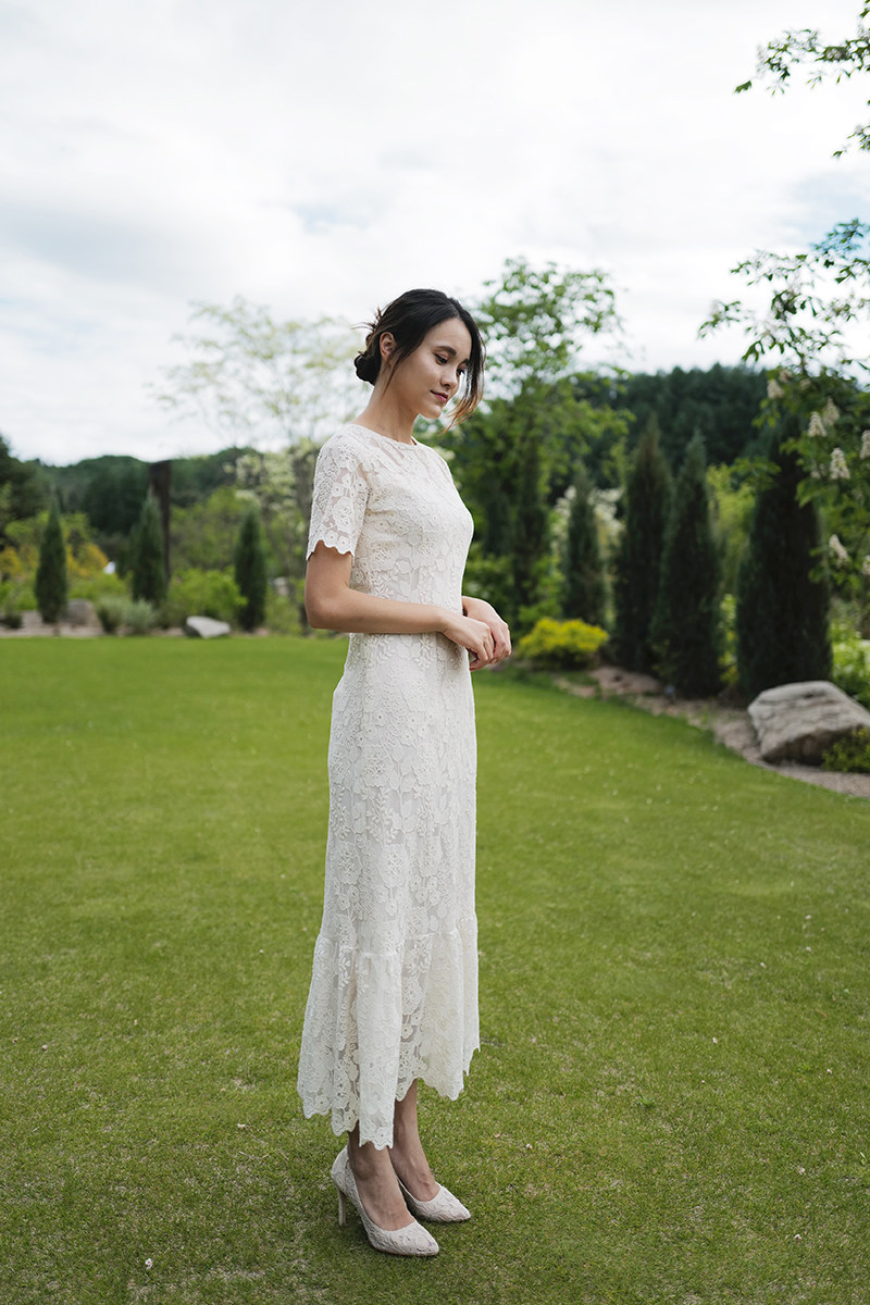 "Helen" Korean retro light wedding dress Lace fish tail thin dress Lawn wedding travel toast suit