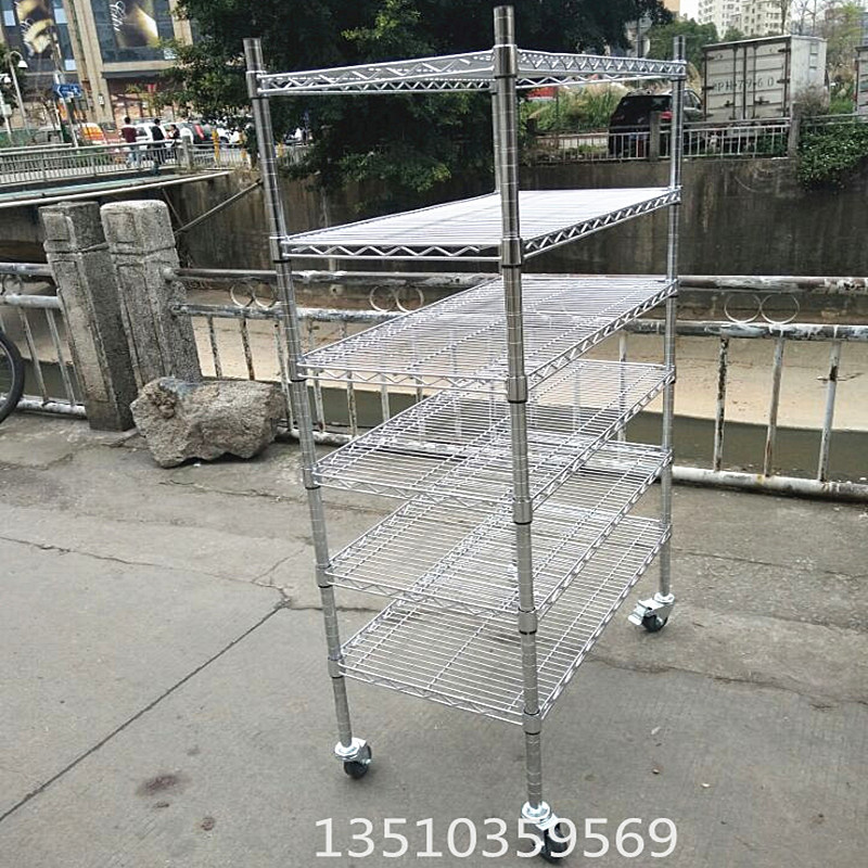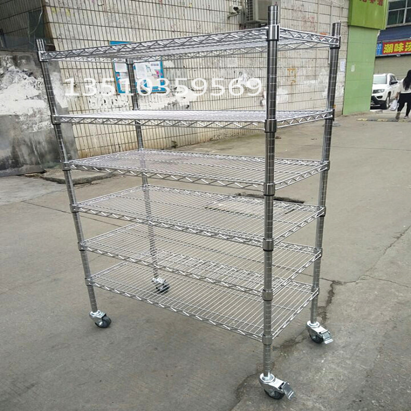 Six-floor stainless steel shelf plated chrome hollowed-out with wheel material cart 1 8 High household shelving Disassembly Display Deck 6