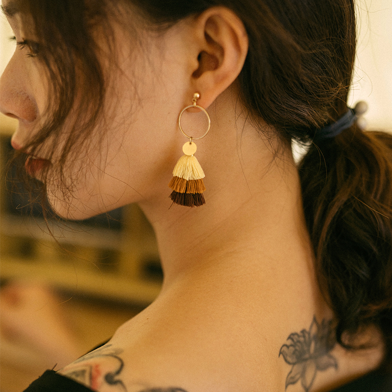 2021 new ethnic wind bohemian long version of the stream Soar pendant temperament small frescoed senior feel earrings small crowdsourced