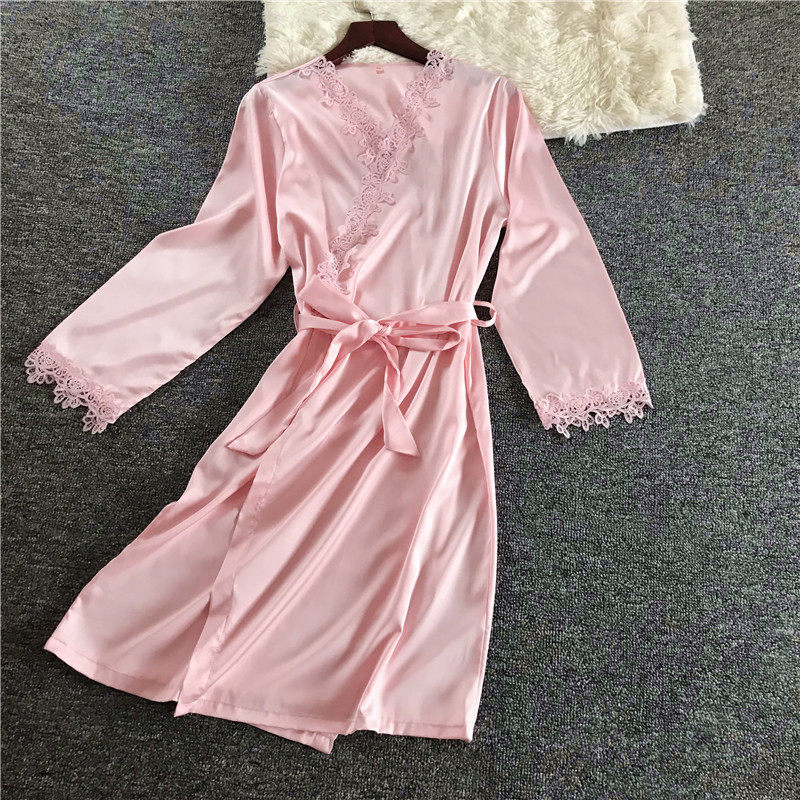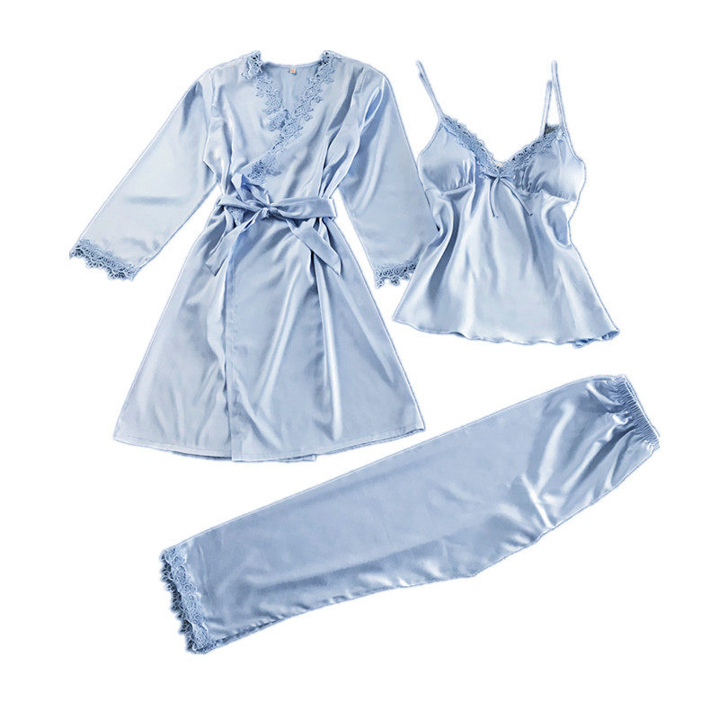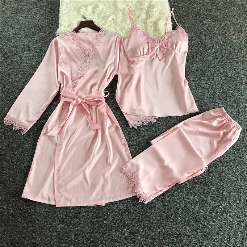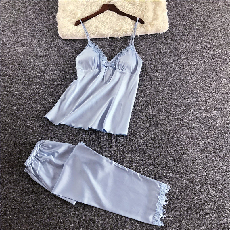Sleepwear women Summer New models Emulated Silk Sleeping Robes Three Sets Sexy Chest Pads Fresh Ice Silk Thin harnesses Long pants Changpants-Taobao