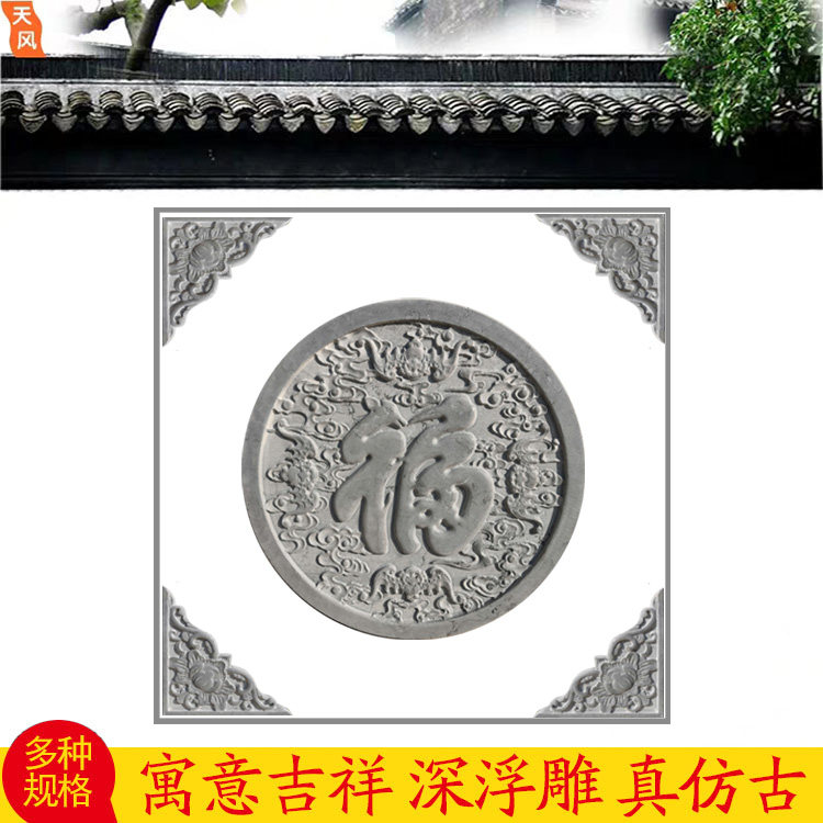 Stone Sculpture Relief Green Stone Carved Window Flowers Fu Characters Hollowed-out Xuanguan Photos Wall Courtyard Window Sill Vintage Decorated Stone Window Pendant