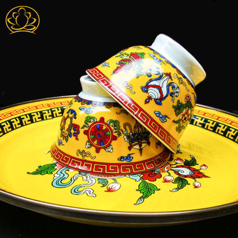 Tibetan-style ceramic glaze Zhongcai disciple rice bowl uses eight auspicious bowl butter tea bowl new 5