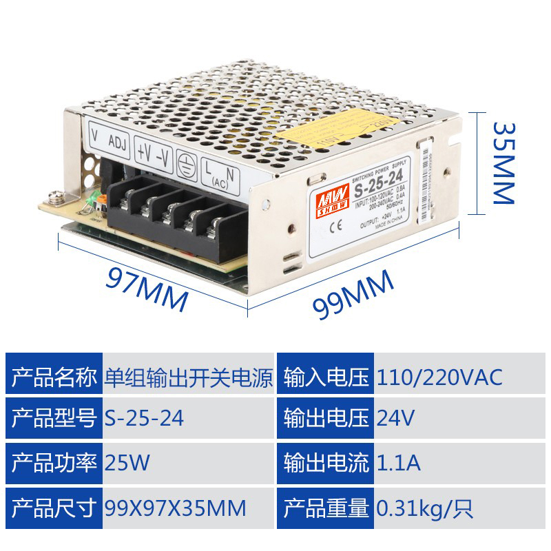 Minwei switching power supply S-15W25W-24V12V5V AC 220V turn DC output 5V3A12V 24V1A