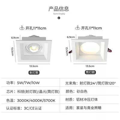 Plotti single-head spotlight LED ceiling light Embedded square downlight Three-color dimming living room concealed bull's eye light