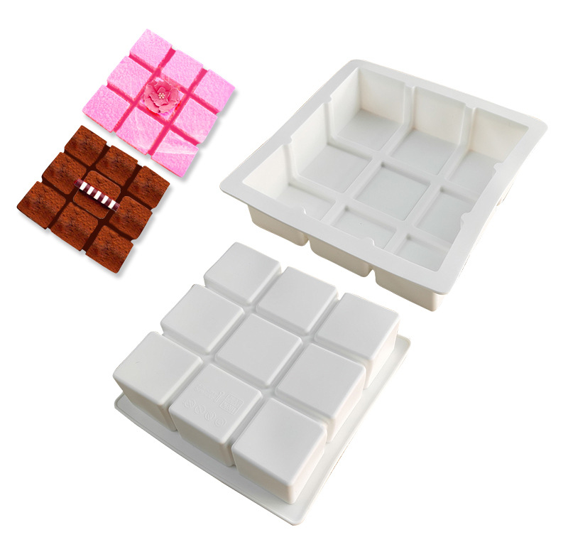 French geometric nine-square grid cut square silicone West Point Chiffon cake mousse mold baking tool