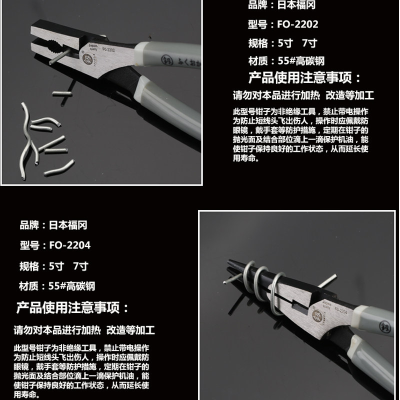 5-inch wire pliers (2212) 7 inch wire pliers (2202) 5 inch tip pliers (2214) 7 inch sharp mouth pliers (2204) 5 inch diagonal nozzle pliers (2215) 7 inch diagonal nozzle pliers