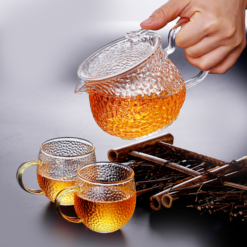 Household hammered glass teacup Small handle cup Single cup Kung Fu tea cup Master cup High temperature tea set