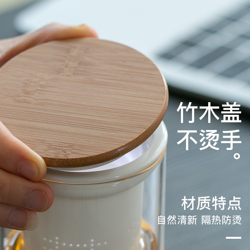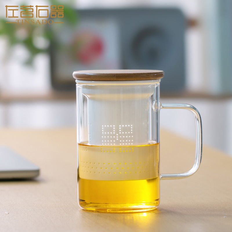 Left Tea Right Instrumental Tea Water Separation Glass Cup Tea Cup Office Large Capacity Transparent Water Cup Sub home with liner