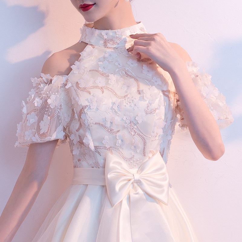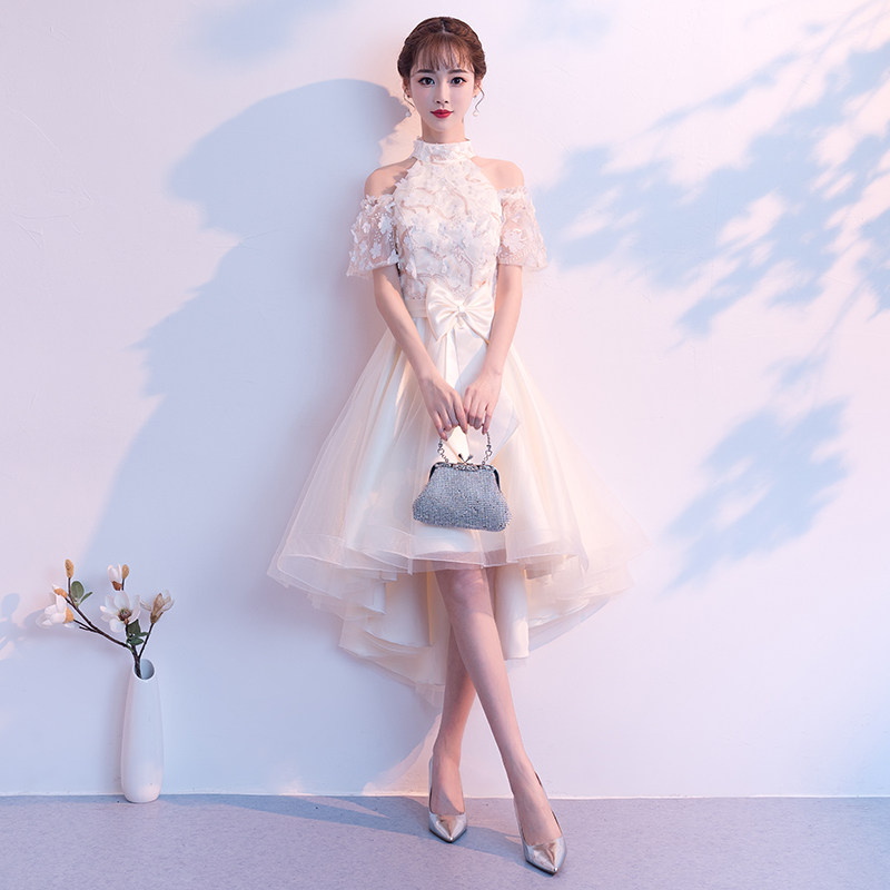 Champagne hanging neck with short front and long back Champagne hanging neck short