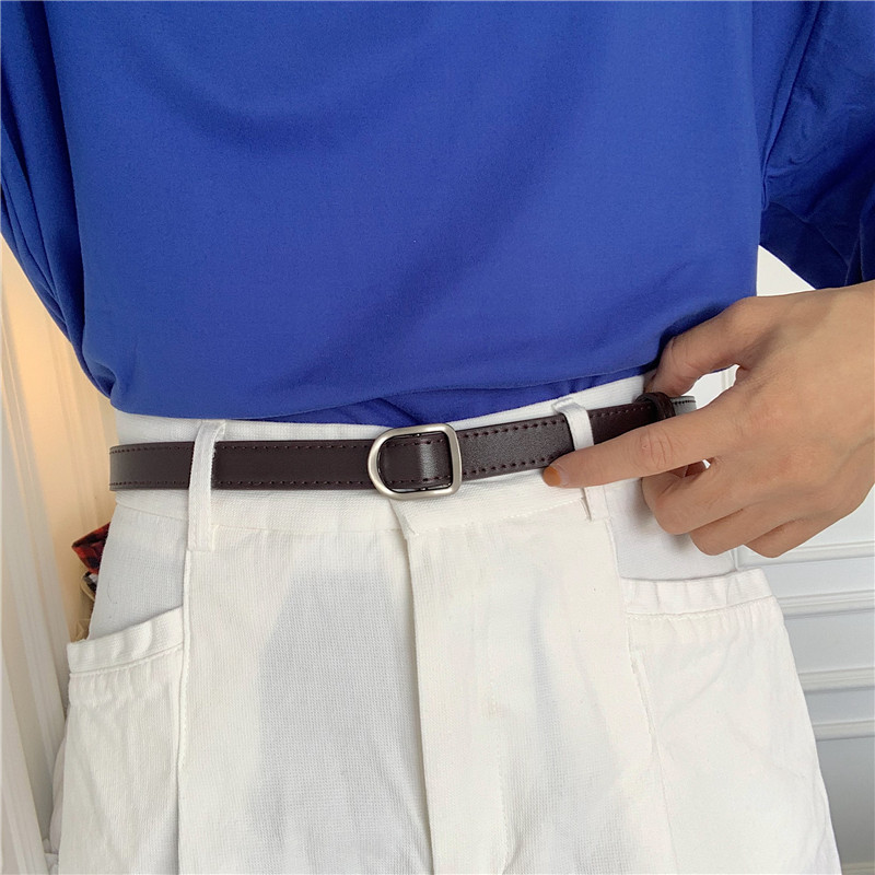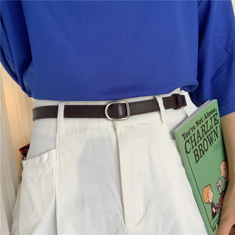 South Korea CHIC Korean version of the black small belt without holes female narrow ins style students simple all-match belt fine without punching