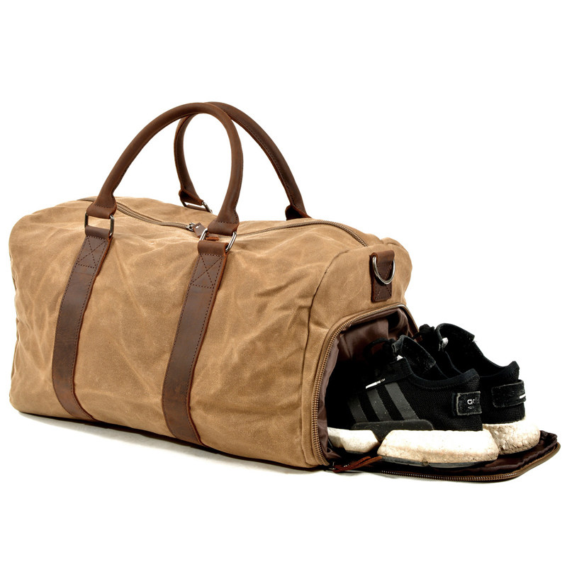 Qigusi men's bag leisure sports fitness bag old oil wax canvas bag shoulder backpack short-distance luggage bag men's tide