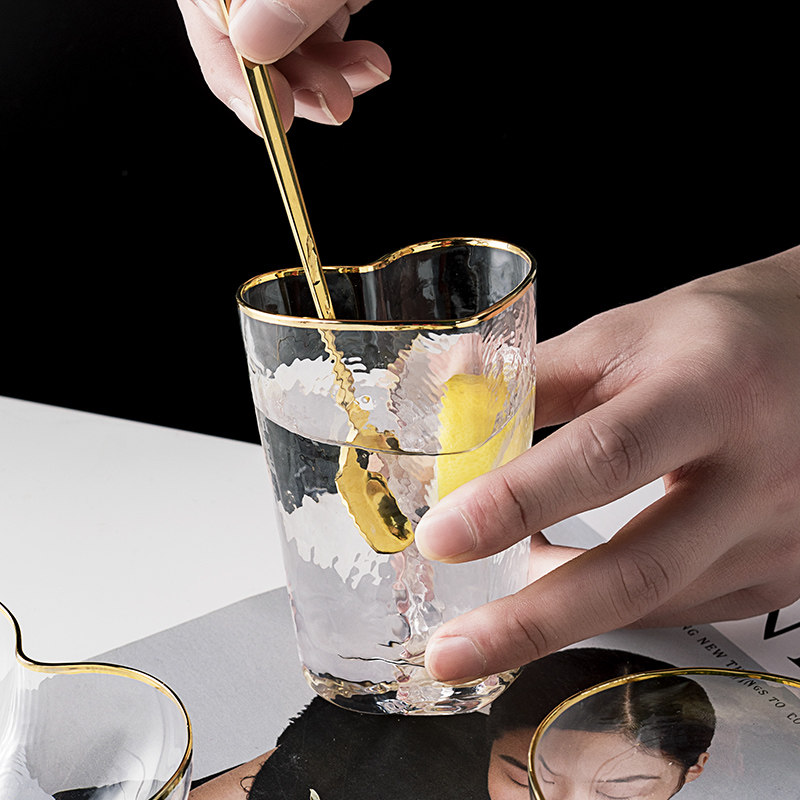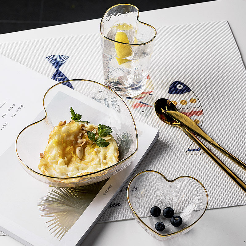 Love glass bowl heart-shaped cup ins golden edge hammer pattern cute salad bowl net red creative transparent fruit dessert bowl