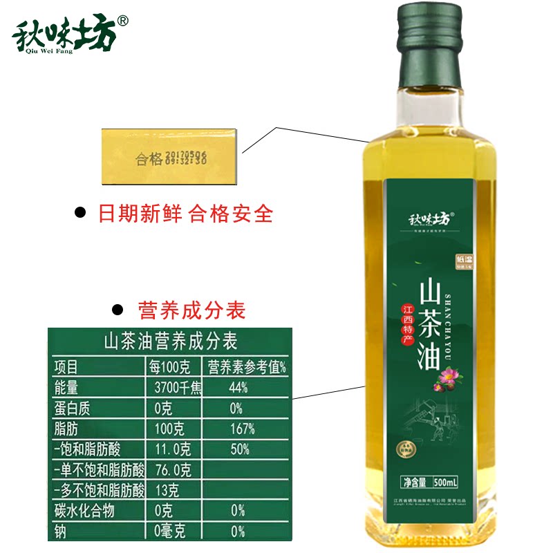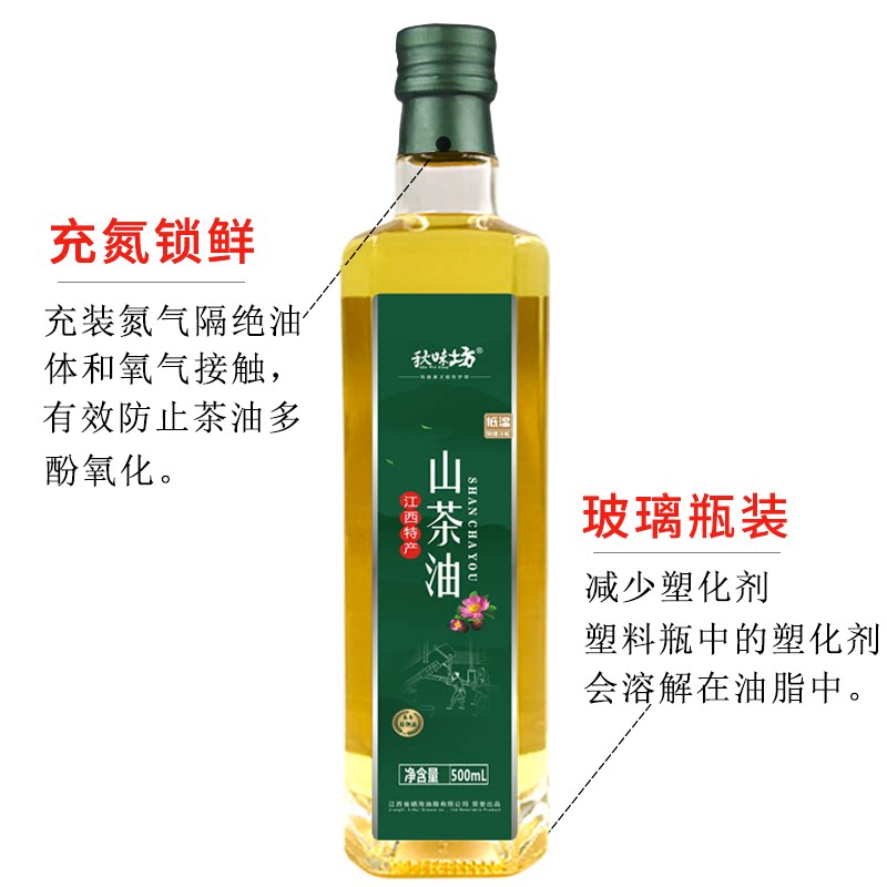 Camellia oil 500mL glass bottle Jiangxi tea seed oil tea tree oil alpine farmhouse tea oil edible oil gift box