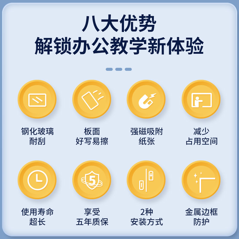 Lotte Tempered Glass Whiteboard Wall-mounted Office Conference Writing Board Magnetic Large Blackboard Hanging Wall Style Teaching Training Lecture Writing Board Home Children Graffiti Wall Message Note Board Erasable