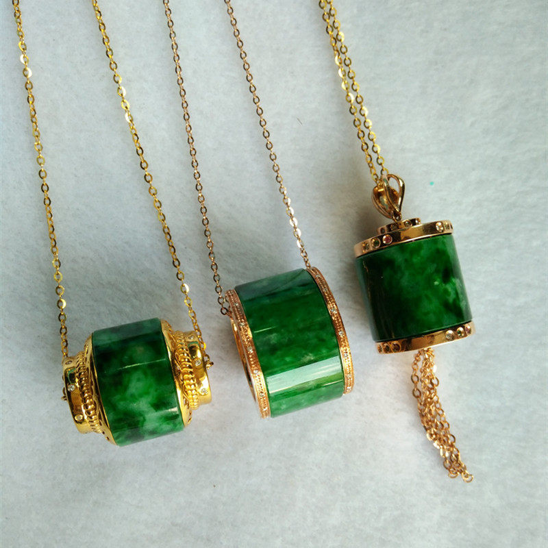 Gold Inlaid Flower Green Road Pass Le Sub a cargo transfer Pearl Drum Beads Necklace Pendant Male gold Accessories Gold Necklace