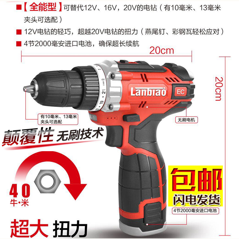 Blue label power tool holder cable 16V20V brushless rechargeable lithium drill High power battery wireless pistol