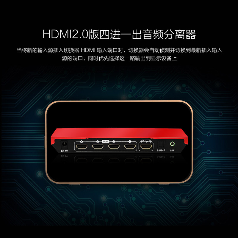 HDMI sound splitter 2 0 version fiber optic headphone port audio amplifier 4K 3D video switcher 4 in 1 out