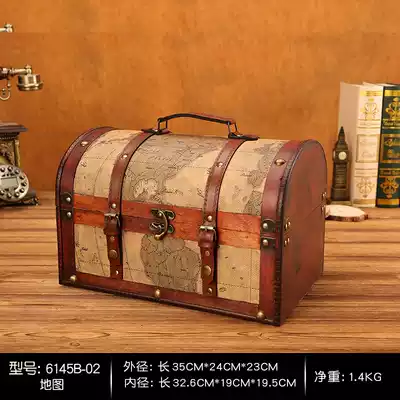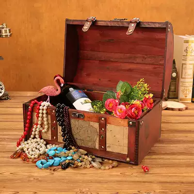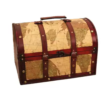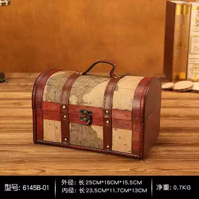 Antique box retro wooden box treasure box old pirate style objects window decorations display props