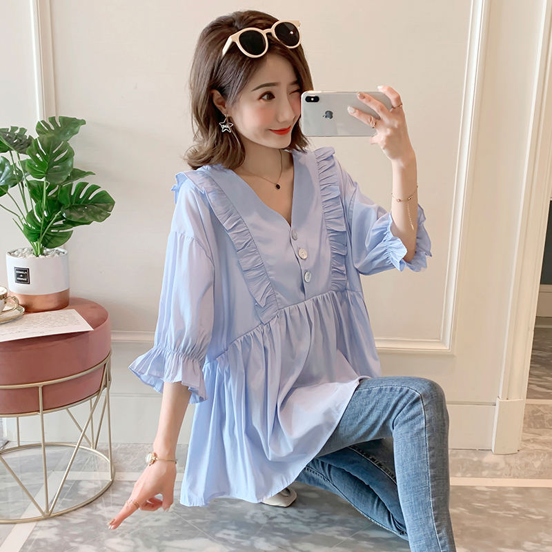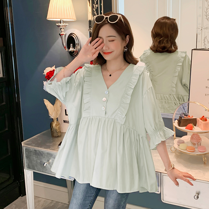 Add Fat overweight pregnant woman short sleeve shirt Summer 2022 Snow spinning for suckling and suckling loose blouses 200 catty