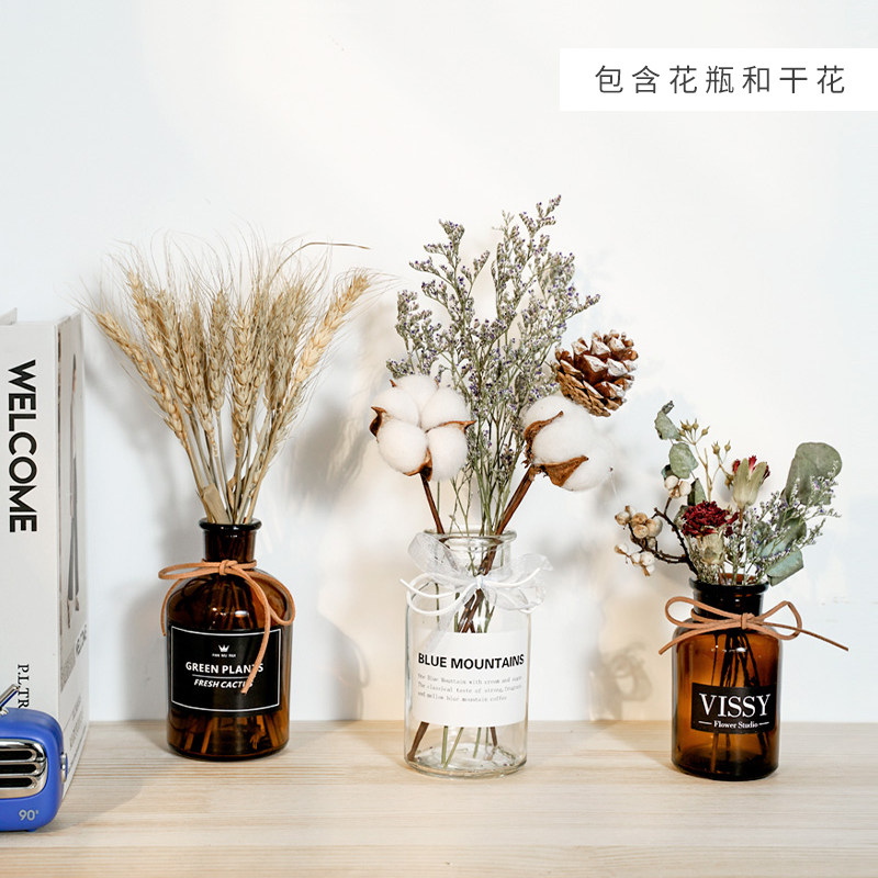 New dry flower suit Country Chrysanthemum Transparent Bottle New Dry Flower Suit Sesame Flower Transparent Bottle New Dry Flower Suit Wood Leather Rose Brown Bottle New Dry Flower Suit Handmade Stick Flower Brown Bottle 1 Transparency 2