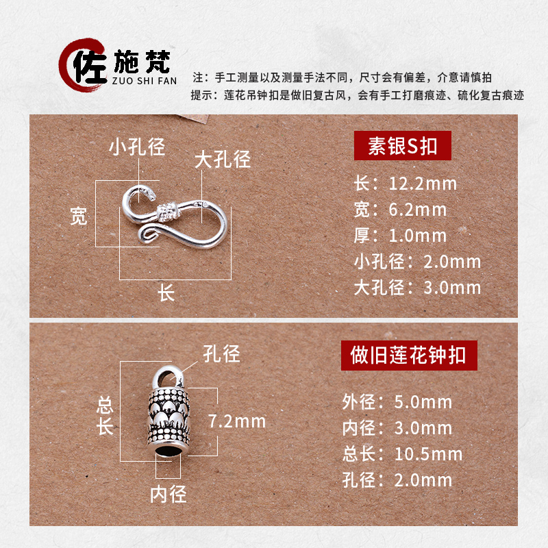 YS402-Plain Silver Thickened S Buckle YS403-Old Lotus Clock Buckle Piece YS402 Thickened S Buckle 1 YS403 Lotus Buckle 2 Pieces