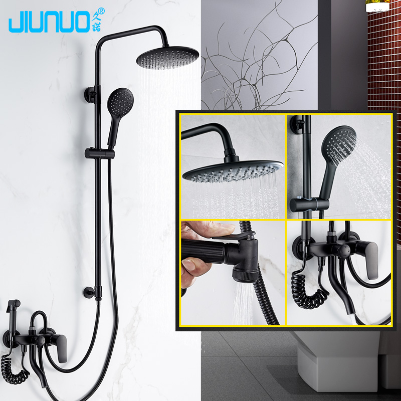 Black Two-piece Shower Head Shower Kit Home Full Copper Bathroom Booster Separated Shower Bath Shower Nozzle