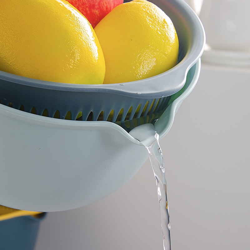 Home Kitchen Double Layer Plastic Hollowed-out Vegetable Basket Vegetable Drain Basin Fruit Containing Basket Drain Basket Wash Basin