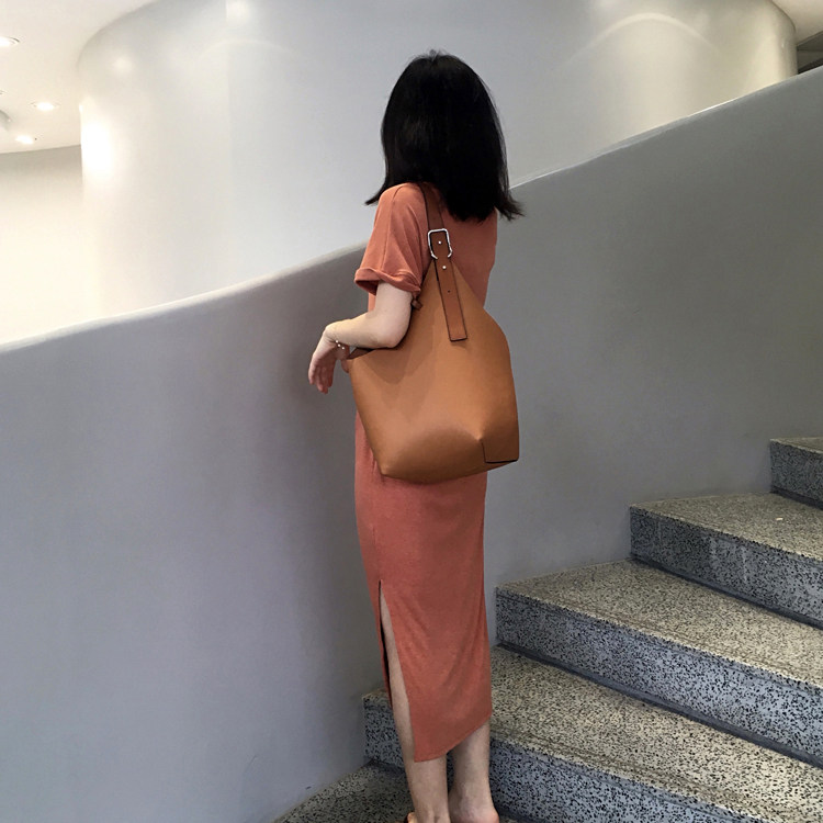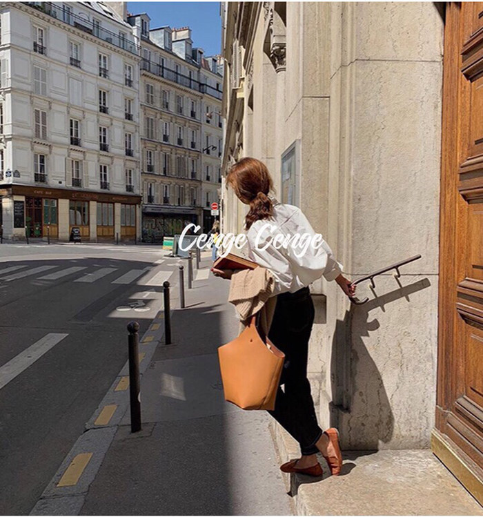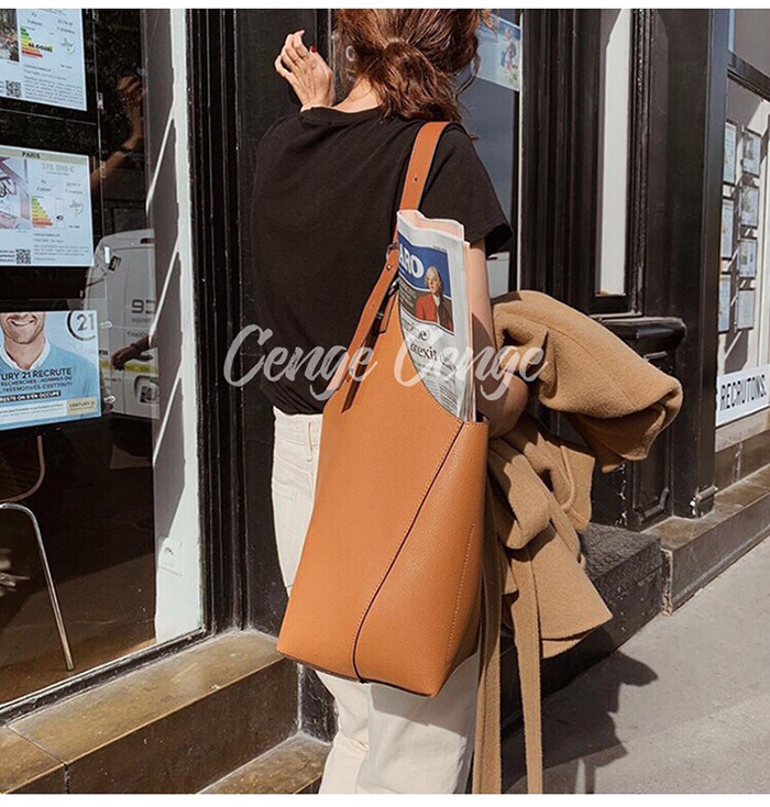 High-quality temperament French simple open hand-held balloon bag bucket cabbage basket cowhide shoulder tote bag