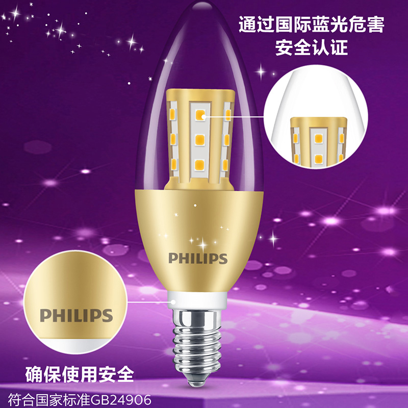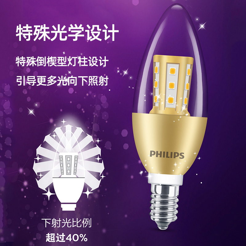 Philips LED light bulb e14 screw mouth energy-saving lamp water crystal lamp spike tail bubble candle lamp for home ultra-light