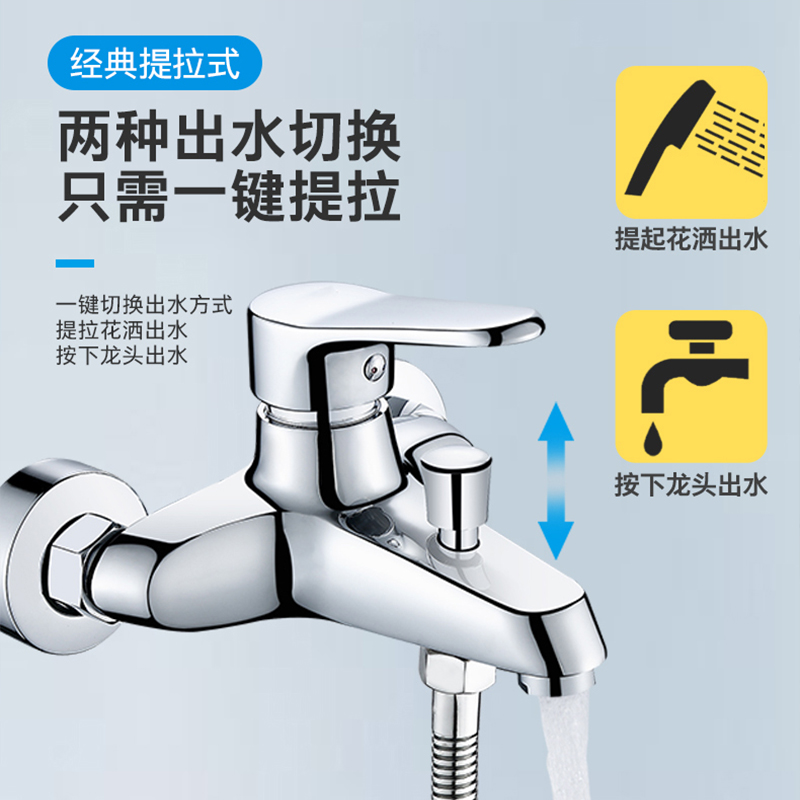 Single shower head with a single shower bath tap