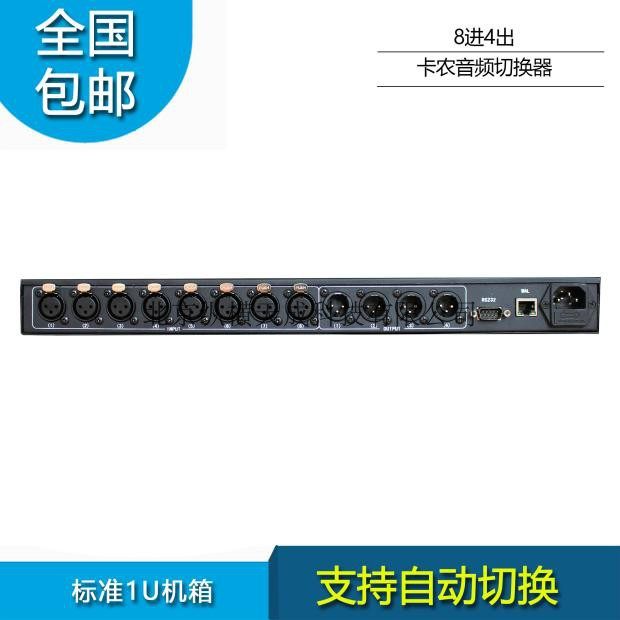 4 in 2 out dual channel smart XLR audio switcher with automatic switching network 232 control standard 1U machine