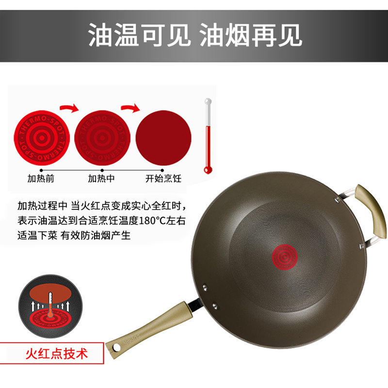 Supor fume-free wok Flaming red dot non-stick wok Household red dot non-stick wok Gas induction cooker wok