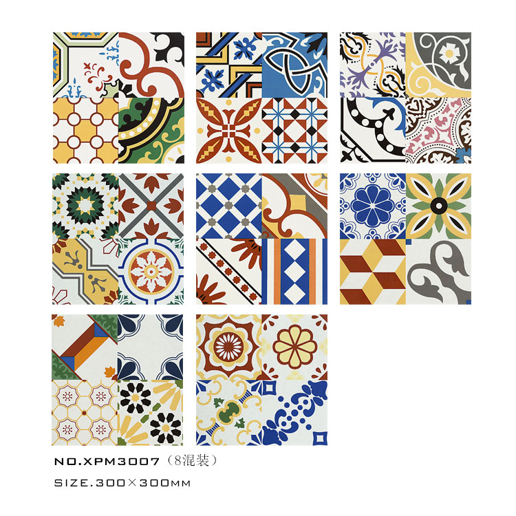 Nordic Small Flower Brick 300 Wall Brick Makeup Room Florin Tile Kitchen Floor Tile Balcony Black & White Retro Color Art
