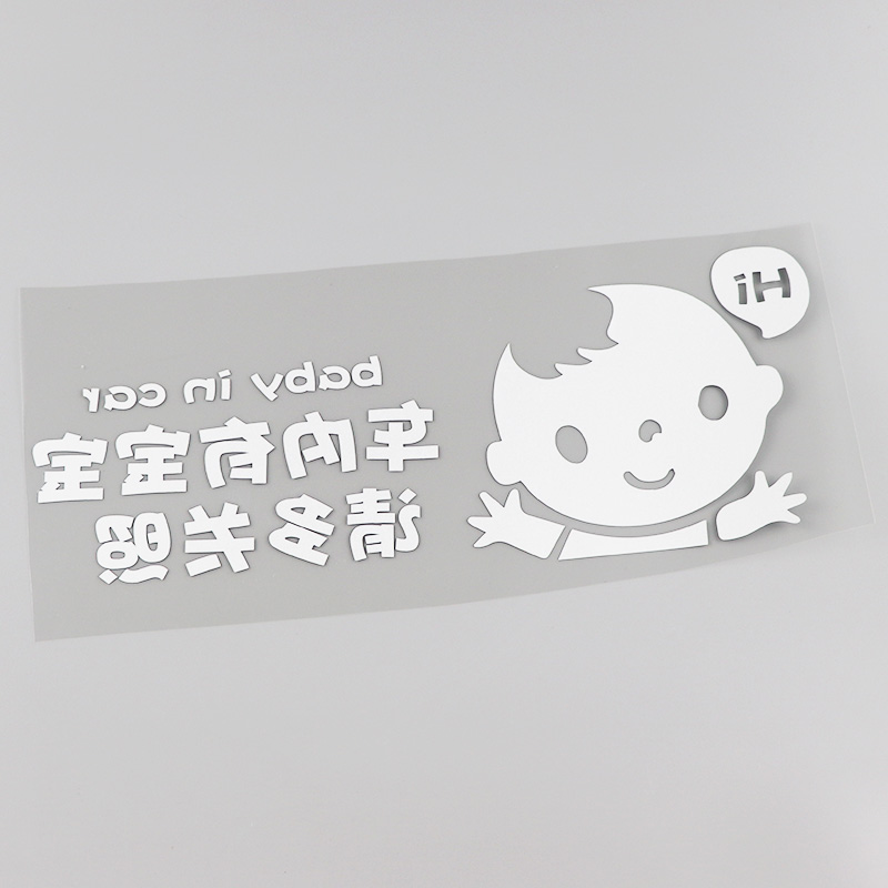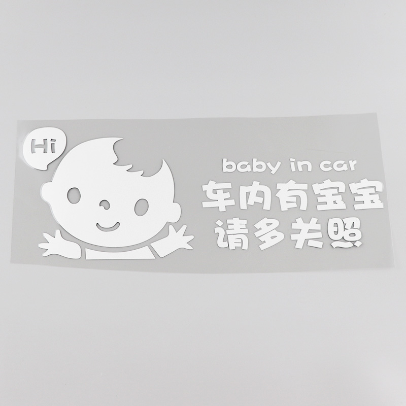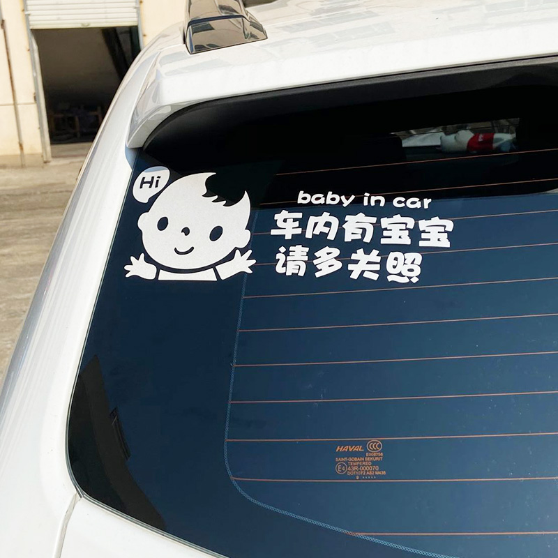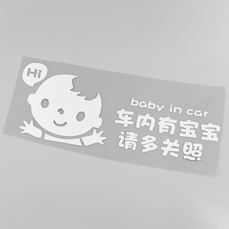 HY603 reflective silver white boy with a baby in the car please take care of 28 5 * 11CM leaflet