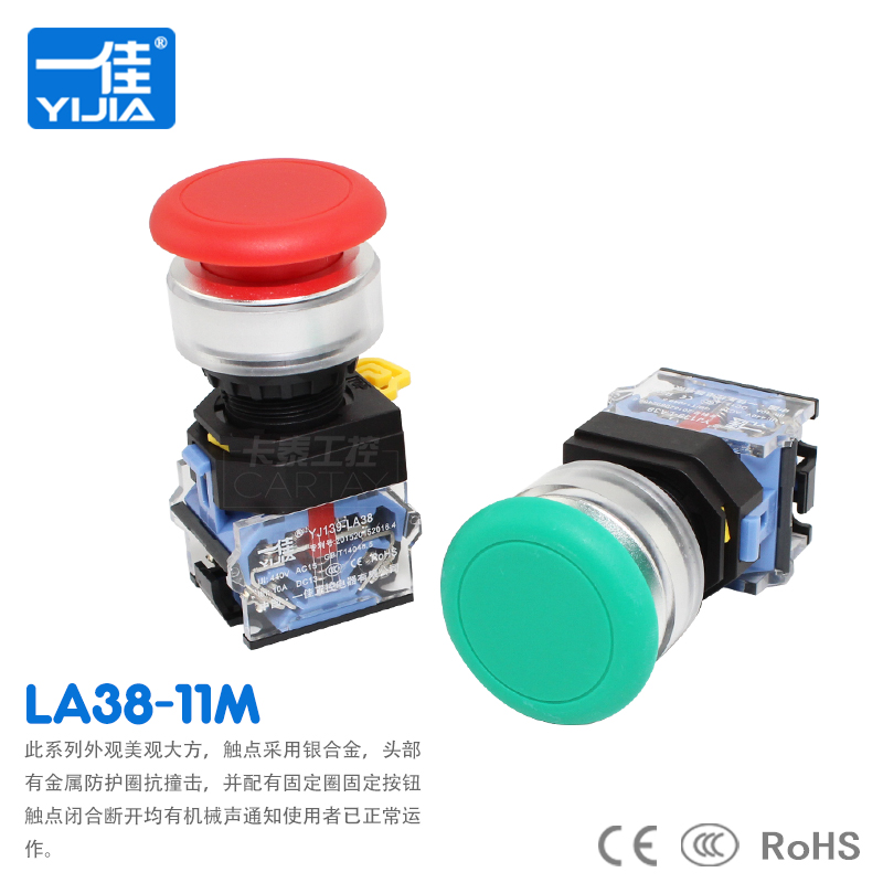 Mushroom Head Button YJ139-LA38A-11M One TYJIA YIJIA Head Emergency Stop Button Switch 30mm caliber
