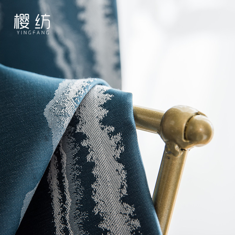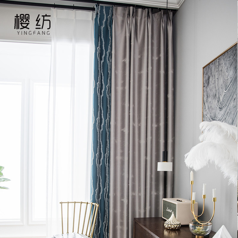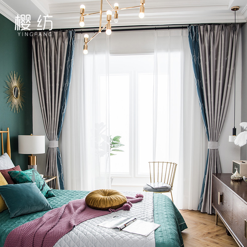 Light luxury curtain bay window full blackout cloth bedroom gauze curtain Nordic modern minimalist shade cloth living room hook curtain cloth