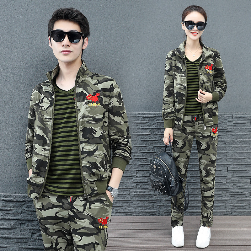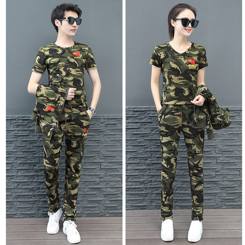 Camouflage two-piece suit for women (short-sleeved camouflage T-shirt, trousers, camouflage two-piece suit for men (short-sleeve camouflage T-shirt, trousers, camouflage yellow three-piece suit for women (coat T-shirt pants) camouflage green two-piece suit for men (coat pants)