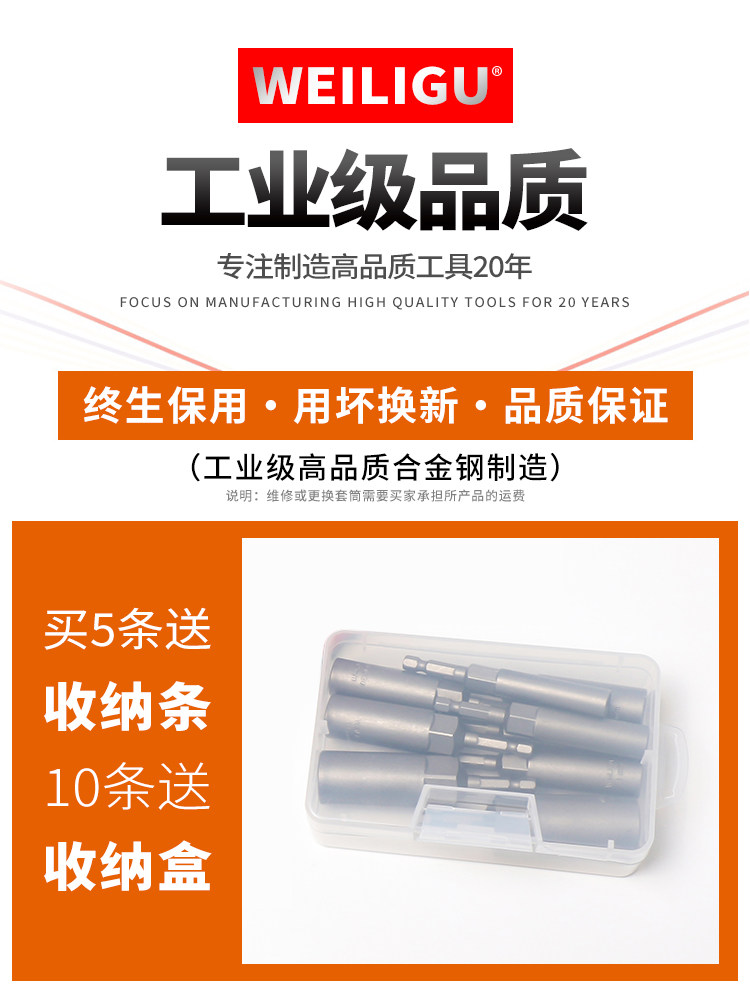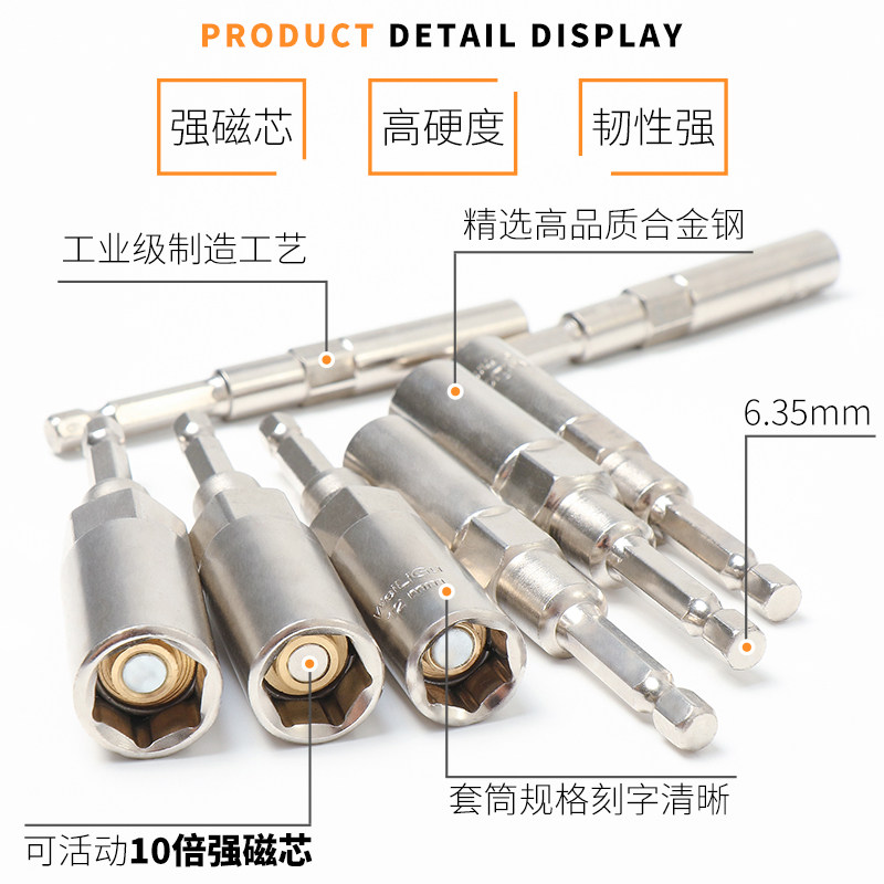 Deep can be shallow to deepen the live magnetic sleeve Electric screwdriver Hexagon Pneumatic screwdriver nut sleeve head Pneumatic wrench screwdriver 8mm