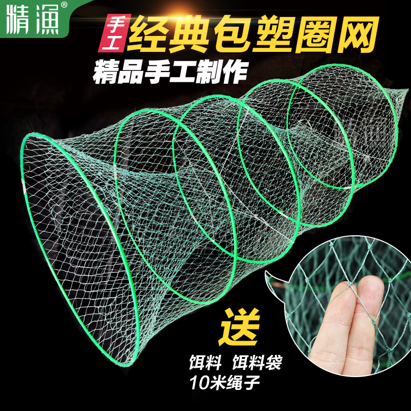 (Fine fishing plastic ring net x5 pieces)Fishing cage Fish net folding fishing net Crab cage Iron shrimp cage River ditch channel net