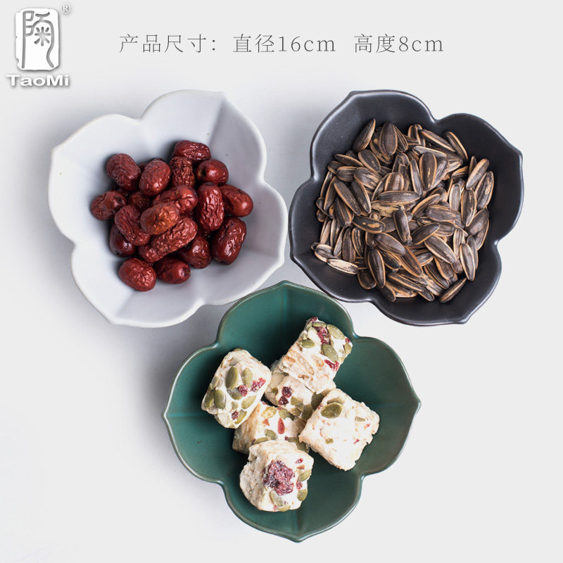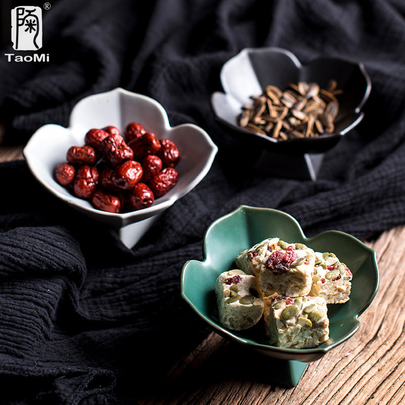Tao Fan Creative Chinese Lotus Household Snacks Snacks Fruit Plate Retro Ceramic High Foot Plate Ornament Nut Plate